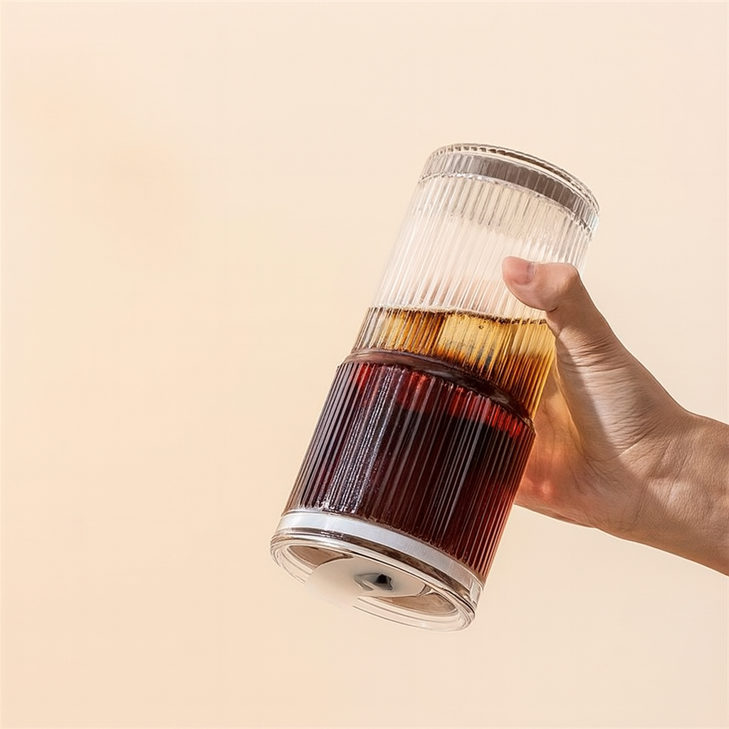 Holds up to 600ML of liquid, suitable for hot and cold drinks including coffee, tea, juice, or smoothies. The cup is made from high-borosilicate glass that withstands temperature changes. Includes a secure lid to prevent spills and a reusable straw for convenience. The vertical ribbed texture provides a firm grip for everyday handling. Easy to clean and dishwasher safe, making it ideal for daily use at home, work, or on the go.